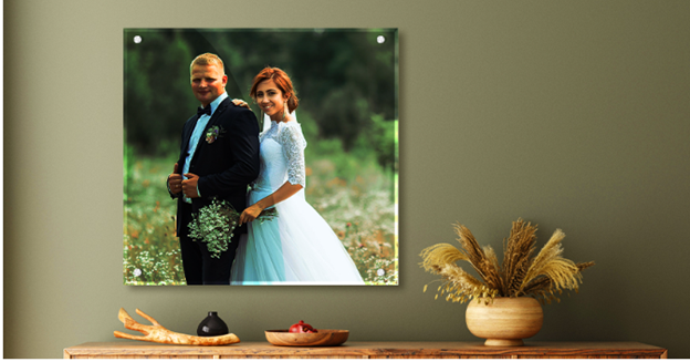 For couples who prefer a sleek and modern look, acrylic prints are the perfect choice. They offer crystal-clear clarity, giving your photo a glossy finish that stands out on any wall.
