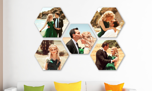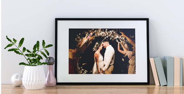 Try a multi-panel canvas, a framed photo print, or a square collage print for a more modern display. You can even make a picture into a canvas collage featuring the walk down the aisle, the first dance, and family moments.