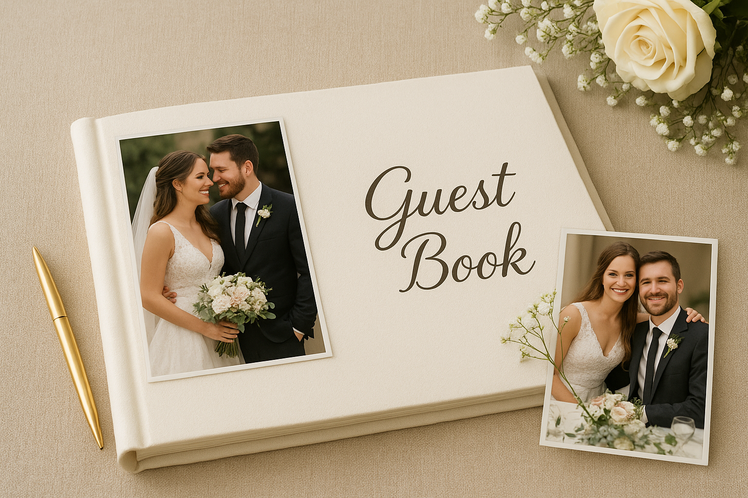 If you’re looking for something unique, design a print picture on canvas featuring your wedding photo and leave space for guest book or notes. It becomes a sentimental keepsake filled with heartfelt messages.
