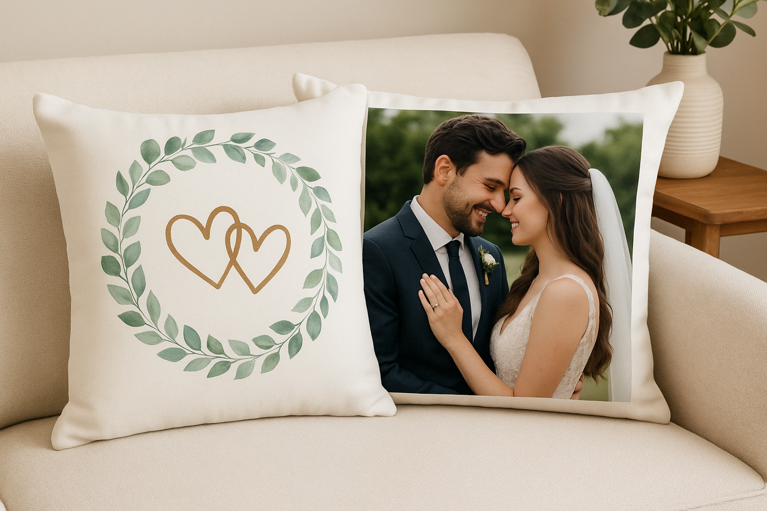 Place them on your bed or couch for a cozy, meaningful accent that reminds you of your love story.